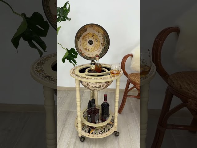 Ищете подарок, сочетающий функциональность и роскошь? Напольный глобус-бар 33001W с картой мира в нежном цвете айвора станет идеальным выбором для изысканных интерьеров! Этот стильный аксессуар поражает своей элегантностью и ретро-дизайном, что напоминает настоящий антиквариат.