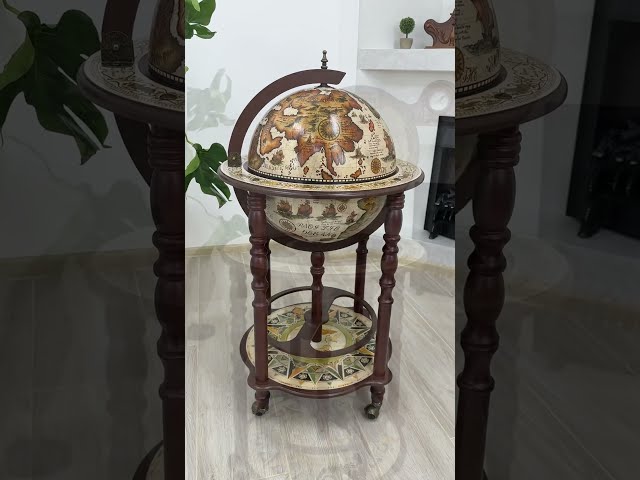 - Напольный глобус-бар "Мировая карта" – это элегантный аксессуар, гармонично сочетающий функциональность и эстетичность. Его светлая бежевая сфера украшена старинной картой, а вишневые деревянные элементы придают изделию аристократический вид. - Удобное хранение: Глобус-бар позволяет организовать бутылки, бокалы, фужеры или рюмки в одном месте. Нижний ярус добавляет простор для дополнительных аксессуаров. - Мобильность: Легко перемещается благодаря встроенным роликам. - Универсальность: Прекрасно впишется в интерьер дома, кабинета или офиса. – Эстетичность: Декоративный дизайн с мотивами старинных карт делает его стильным дополнением любого интерьера. – Идеальный подарок: Этот глобус-бар станет идеальным подарком для мужчины, ценителя элитного алкоголя или поклонника стильных интерьерных аксессуаров. Он совмещает практичность, презентабельность и изысканный вид, что подчеркивает хороший вкус владельца.