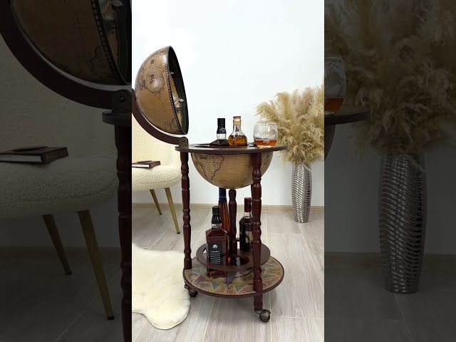 Простота в эксплуатации: Глобус открывается удобным способом для доступа к хранению напитков, что обеспечивает легкий доступ к бутылкам и бокалам.