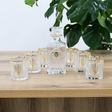 Набор изготовлен из хрусталя вручную, накладки покрыты серебром 925 пробы, золотом 24 Кт и декорирован платиновой каймой. Накладки выполнены по уникальному дизайну лимитированному тиражу.