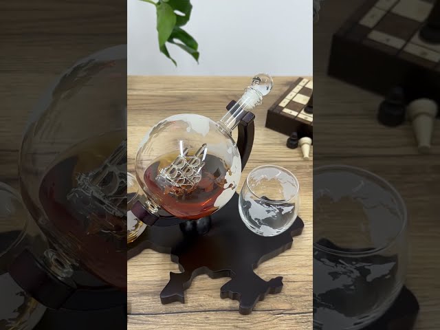 В набор входит: – Подставка из натурального черного дерева, выполненная в форме карты Украины, символизирующая единство, крепость и величие родной земли. – Графин объемом 850 мл из прозрачного стекла, в центре которого расположен изящный парусник. При наливании виски создается удивительный визуальный эффект, словно парусник плывет на волнах золотистого напитка. – Два стакана объемом 300 мл, украшенные матовыми изображениями континентов, что придает им особый шарм. – Лейка из нержавеющей стали для удобной и аккуратной наливания напитка.
