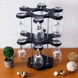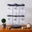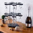 Очаровательный набор, похожий на цветок или снежинку, блестит и переливается на свете. Стандартные рюмки подвешены за ножки на трехэтажной конструкции из дерева оттенка махагона. Преимущества комплекта: