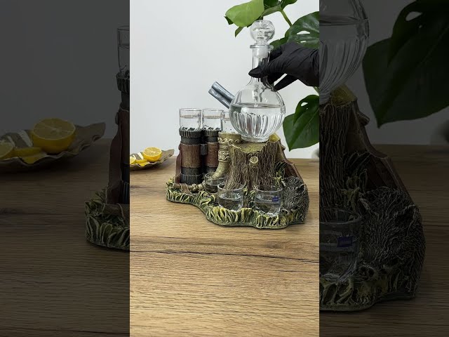 Штоф-бар станет функциональным подарком для охотника, также этот сувенир будет необычным декором интерьера беседки, гостевого домика или каминной комнаты.